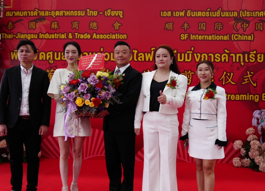 3月22日,泰国苏商总会与顺丰国际((中国)在尖竹汶府举行榴莲合作直播基地剪彩仪式。出席仪式的嘉宾包括泰国苏商总会主席陈柱、顺丰国际(泰国)有限公司总裁张佳伟、尖竹汶府参议员育坤、泰国苏商总会名誉主席蒋丽娜、泰国华泰珠宝有限公司总经理王忠良、泰国头条新闻代表金晓宇,以及众多中泰私营企业代表和媒体代表。